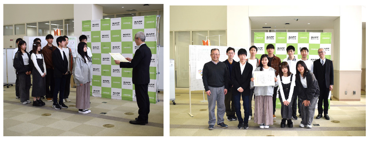 意見交換を終え、近畿農政局兵庫県拠点の職員からは「学生のみなさんが目を輝かせ、力強く話してくれたのが印象的でした」との声も寄せられました。学生たちの取り組みが、将来の日本農業を支える力になることへの期待が感じられるコメントでした。