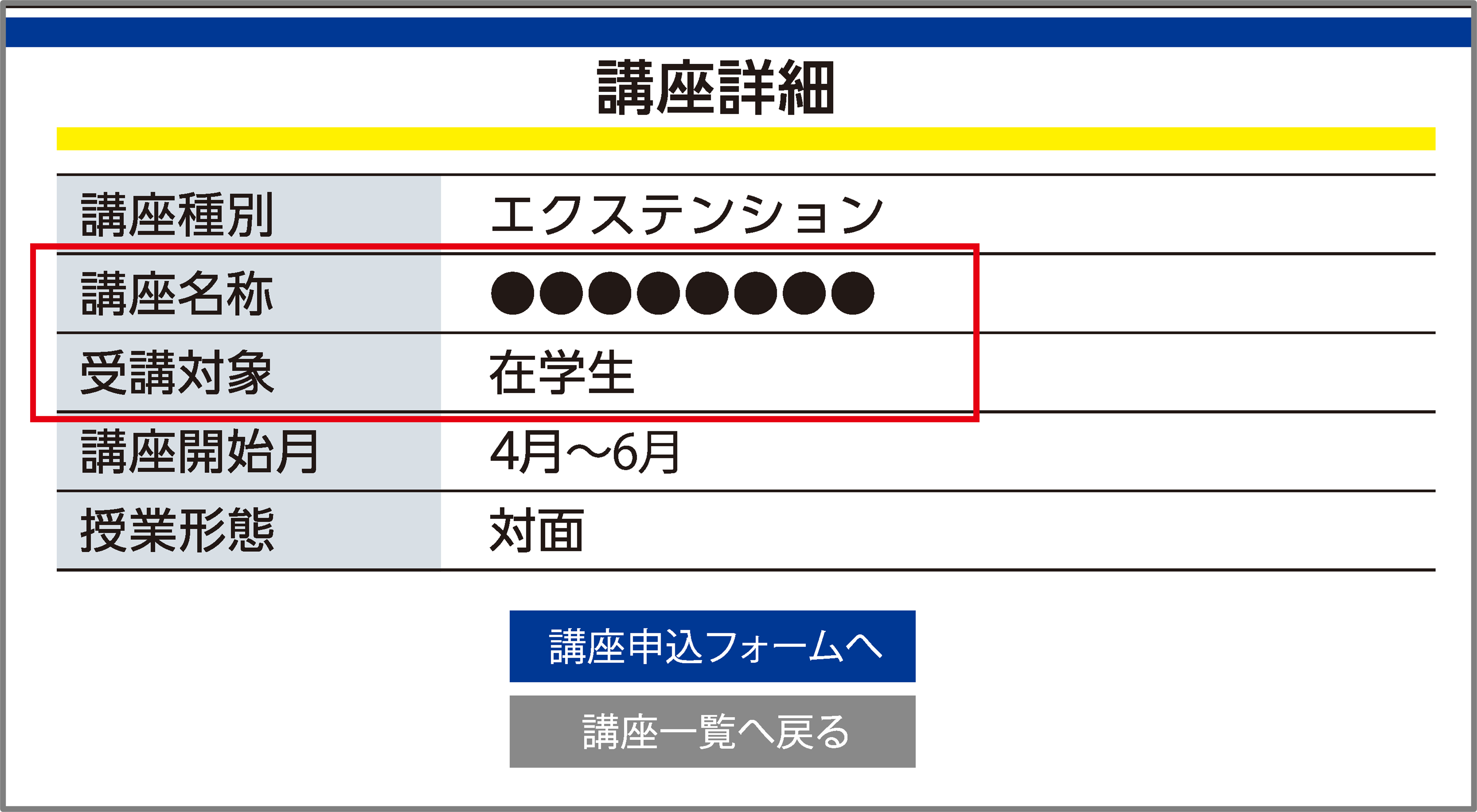 ※特に講座名称および受講対象の「在学生」「卒業生」「一般」の区分に誤りがないかご確認ください。