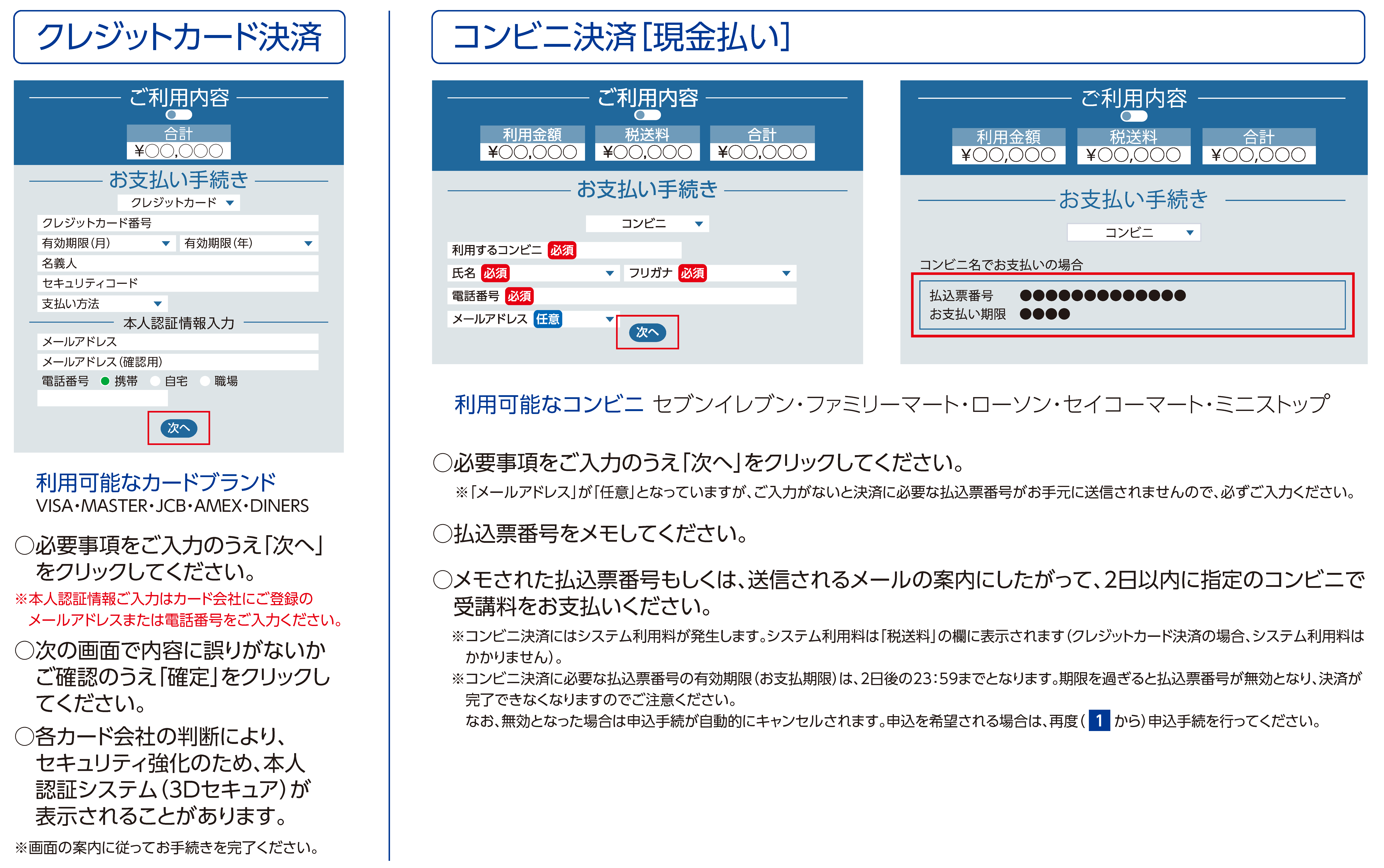※現金払いをご希望の方は、コンビニ決済をご選択ください。