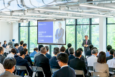土井健司 副学長・研究推進社会連携機構長は、冒頭のあいさつで、4月からのプレオープン期間に約550名の利用があったこと、既にSpark Baseを拠点とするスタートアップ企業が誕生しており、続く2社目も準備中であることを紹介しました。そして、これからの将来を見据え、学生や地域の方々によるスタートアップや大学における研究成果の社会実装など、地域とも連携しながら一緒にSpark Baseを発展させていくことへの期待を述べました。