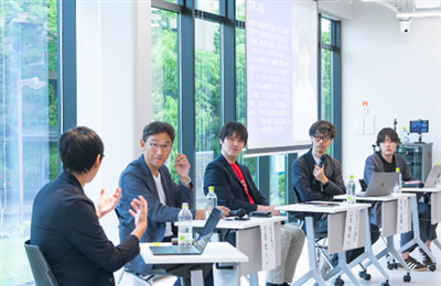 その後、松本修平氏(名古屋大学ディープテック・シリアルイノベーションセンター特任准教授/本学総合政策学部・国際学部 非常勤講師) のモデレートのもと、大櫃直人氏、山本倫也氏(Vision Labs株式会社 CEO Co-Founder/本学工学部 教授)、菊地凌輔氏(一般社団法人イヒ 専務理事/本学人間福祉学部 卒業生)、小菅優衣氏(関西学院大学人間福祉学部4年)の4人による、Spark Baseが掲げる「多様な関わりから価値が生まれる場づくり」についてトークセッションを行いました。その中で、Spark BaseがKSCの立地を活かして発展し、共創の経験ができる場にしていくためには「人との出会い、人とのつながり」が大切であることが話題になりました。そして、新たな拠点でのさまざまな取り組みの積み重ねにより魂を吹き込んでいくことがSpark Baseの活性化につながることを、それぞれの視点から語りあいました。