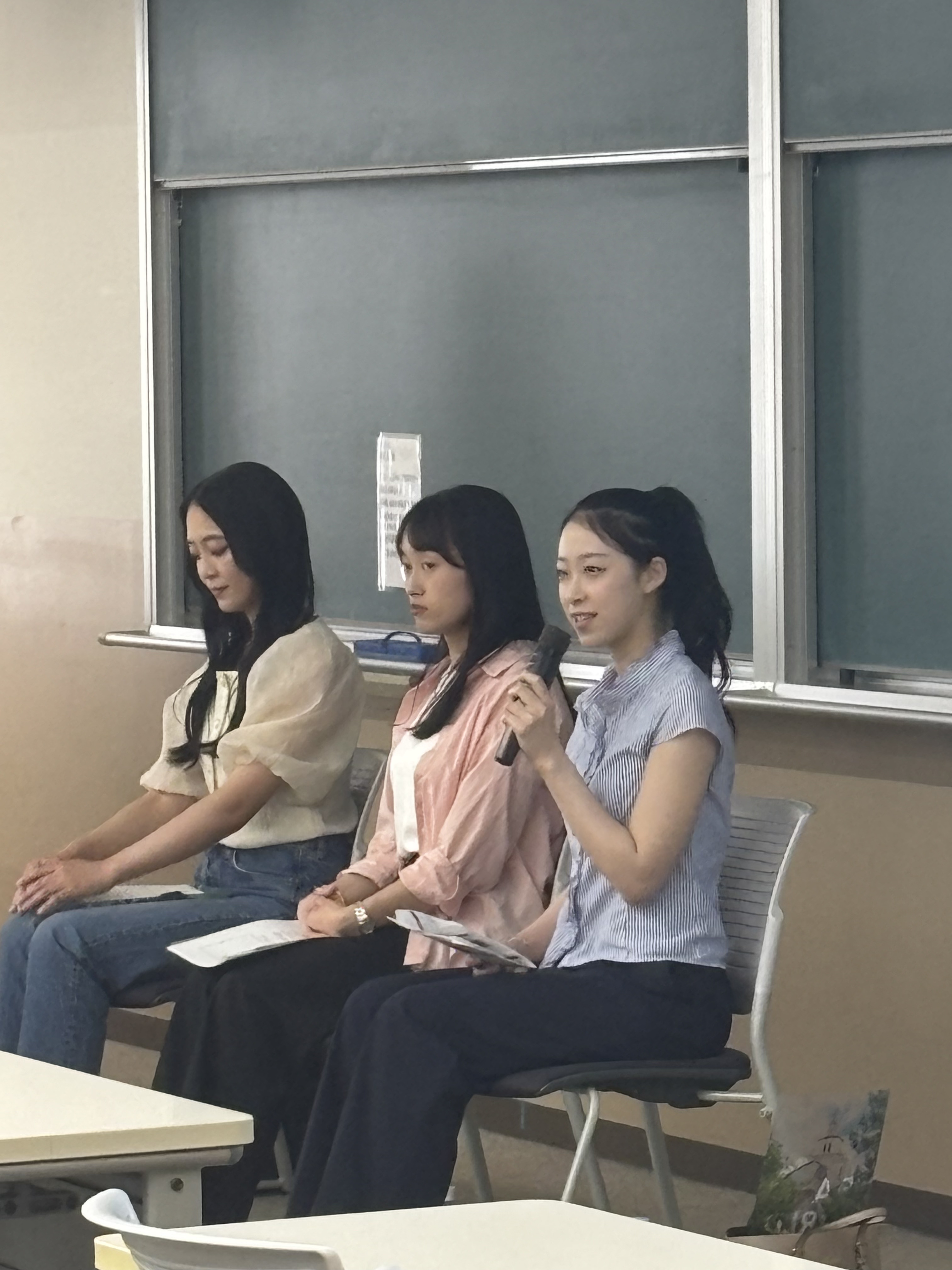 中上級プログラムのパネルディスカッションでは、学生3名が登壇し、中期留学と交換留学の違い、カナダの協定校と共同で運営する本学独自のプログラムCross-Cultural College (CCC)の魅力を、自身の経験と共に話しました。この中で、2024年2月から11月までニュージーランドのカンタベリー大学に交換留学に行った後、2025年2月のCCCに参加した社会学部4年生谷野紗良さんは、「自分も留学フェアに来てこのプログラを知ったので、自分と同じようにこのプログラムに関心を持ってもらえたらいいなと思う。当時の経験を話すと懐かしくて楽しくて、将来このみんながプログラムに参加するのかと思うとすごくワクワクした」と話していました。