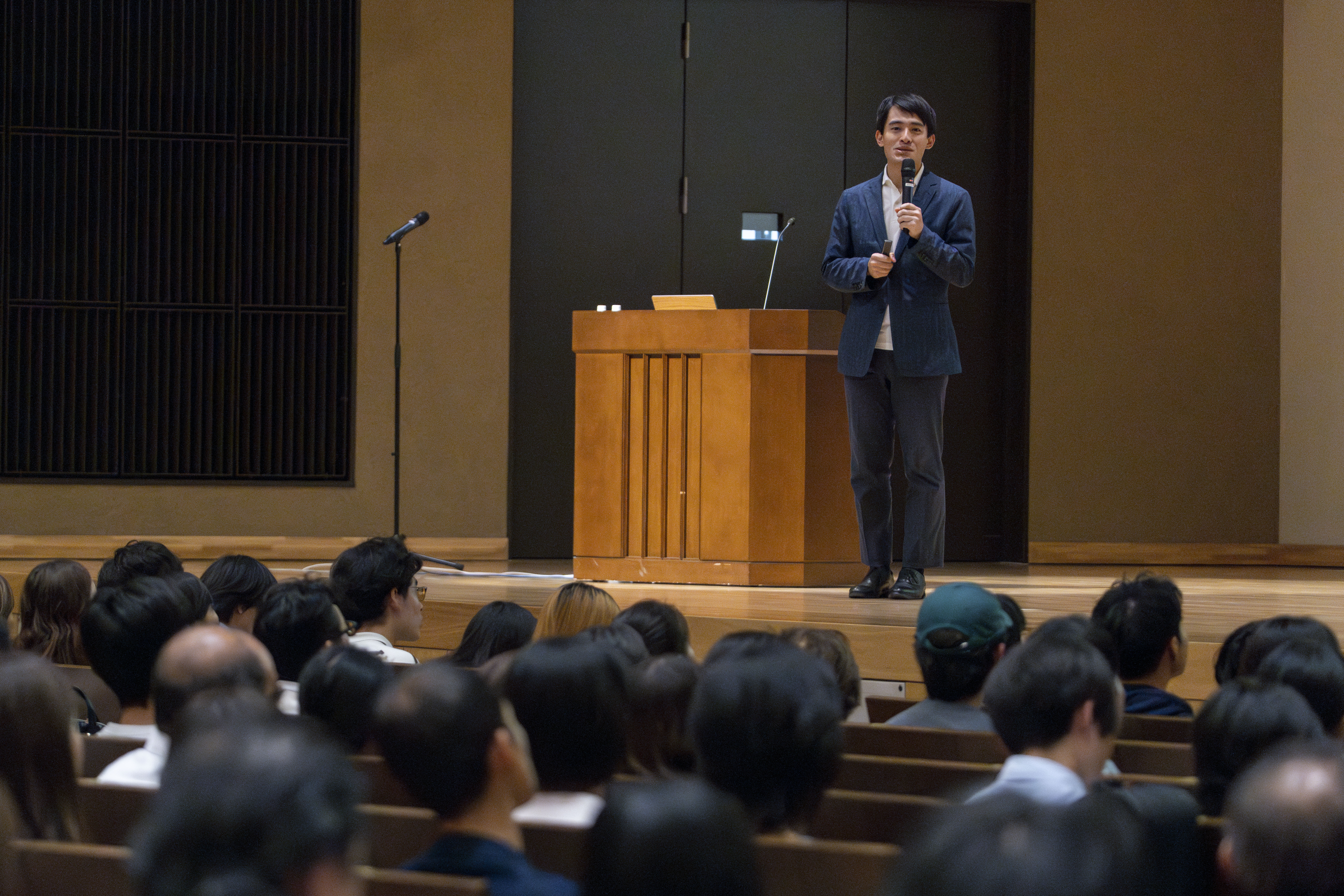 2025年10月14日、西宮上ケ原キャンパスの中央講堂で、芦屋市長・髙島崚輔氏による講演会「主体的に学びを、人生をデザインする」を開催しました。