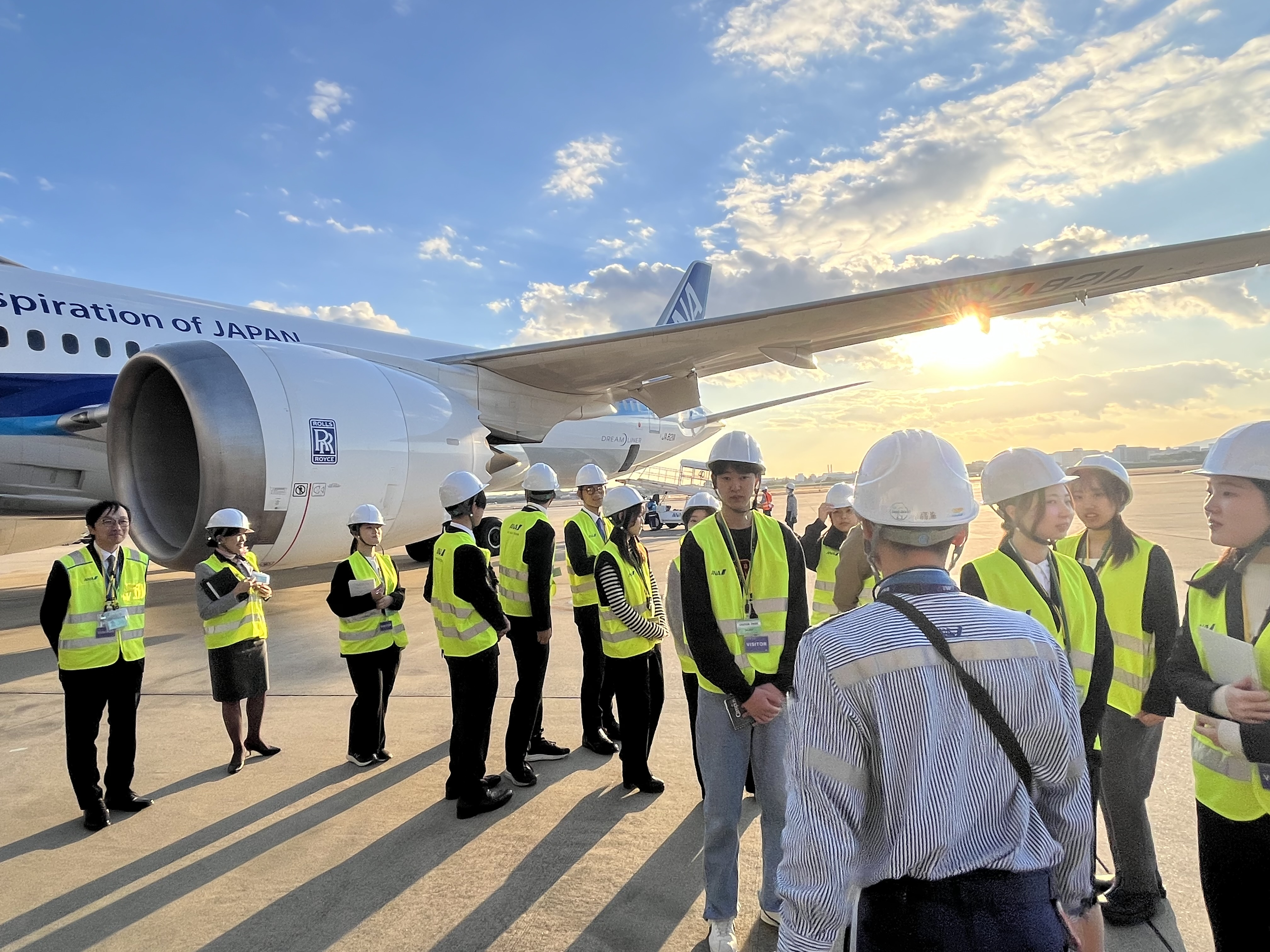 総合政策学部1年生の学生は、「自分が入ったことの無い区域や知らない仕事について直接見て沢山学ぶことが出来ました。ひとつの飛行機を動かすために、たくさんの人々が関わっているということに驚きました。表に立たれるパイロットや客室乗務員だけでなく、オペレーターのように裏で運航を支えている方など、誰ひとり欠けてはいけない重要な仕事をされていることに感動しました。私も将来、誰かのためになる仕事をしたいです」と話していました。