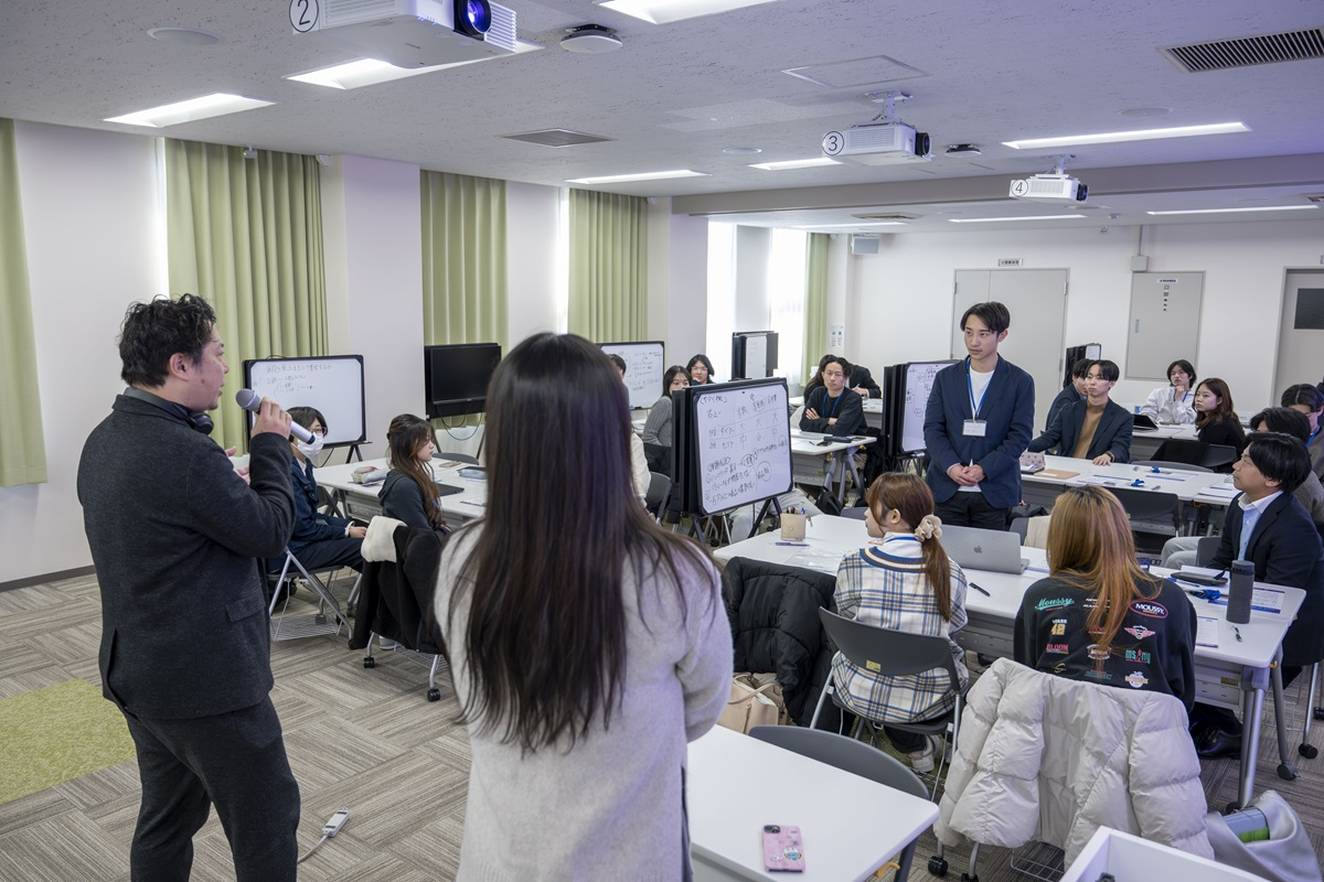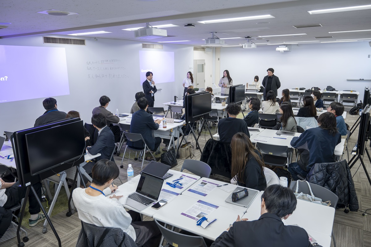 発表を受けて担当者は、「短時間で初対面のメンバーと議論するのは難しかったと思いますが、実際のプロジェクトでもよくあることです。別のチームの発表を聞いて新しい気づきもあったはず。コンサルティングはビジネスを変え、人を動かし、社会に貢献できるやりがいのある仕事。今日の経験がそのきっかけになればうれしいです」と学生にコメントを送りました。