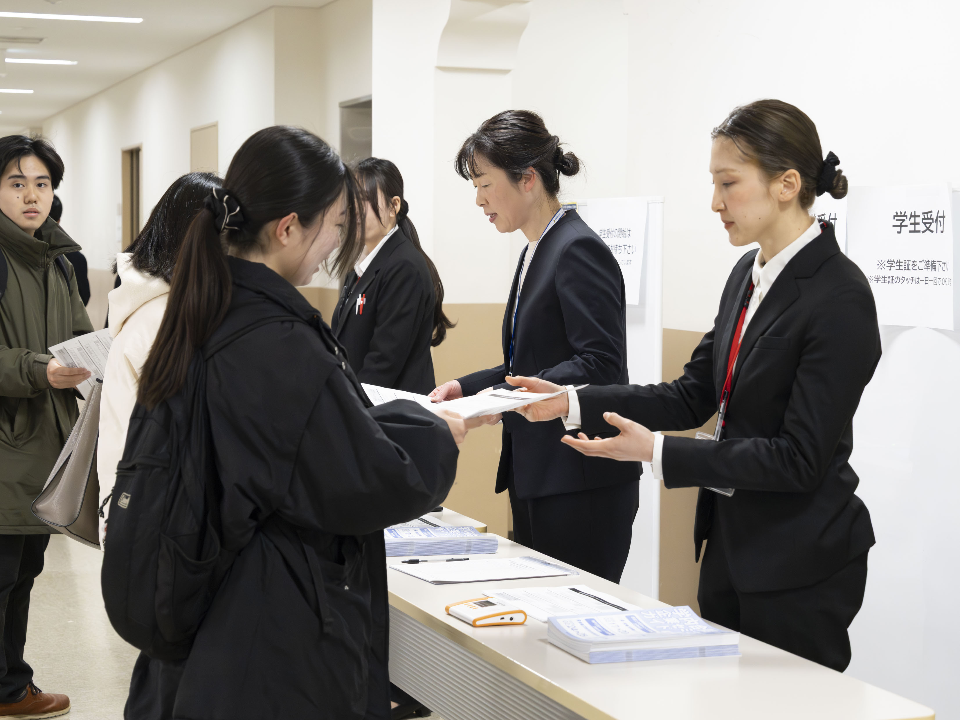 西宮上ケ原キャンパスでは、4日間でのべ4,587人の学生が参加しました。中には、部活動の練習の合間に練習着で参加している学生や、就職活動を始めて間もない学生もいて、熱心に採用担当者の話を聞き、メモを取っていました。