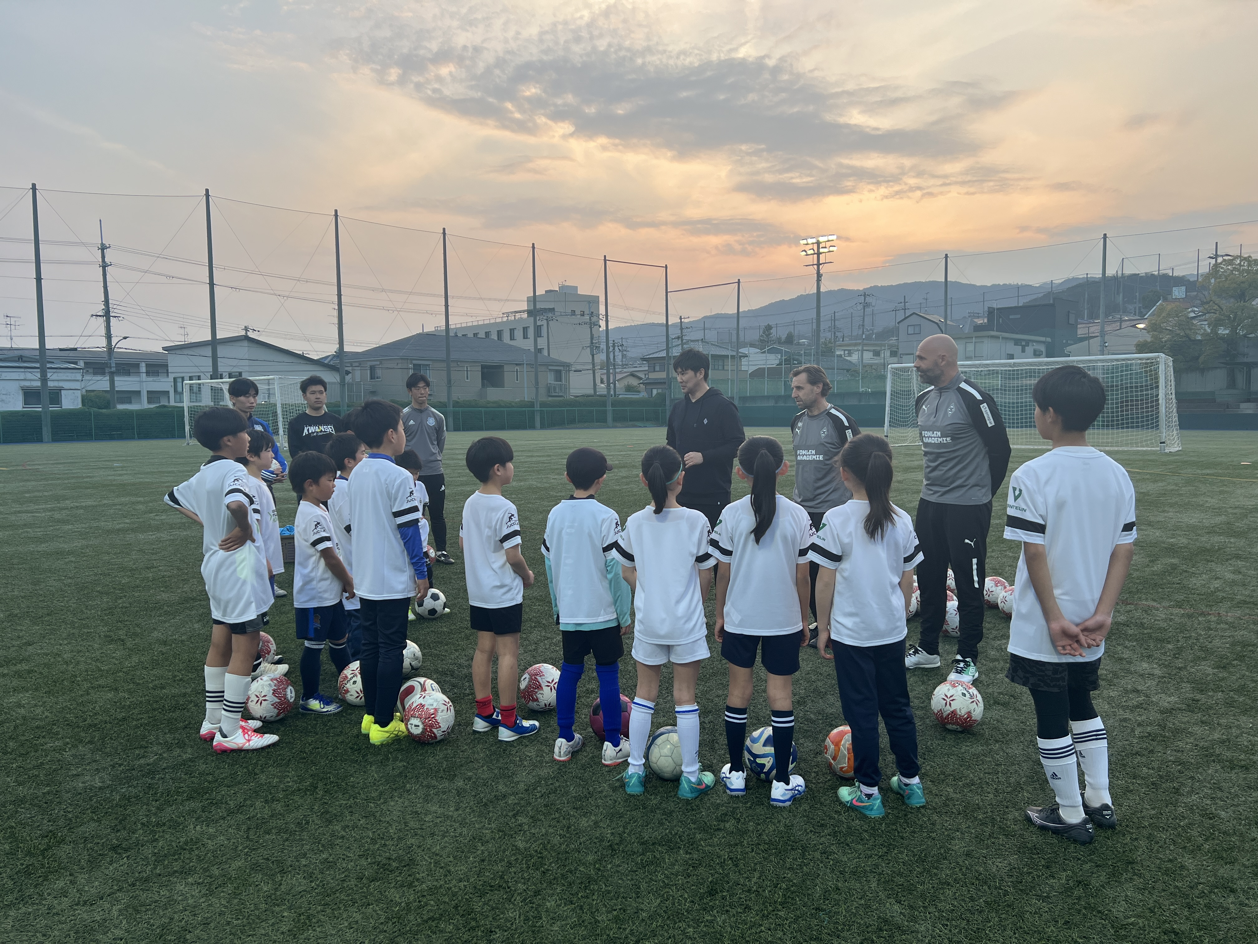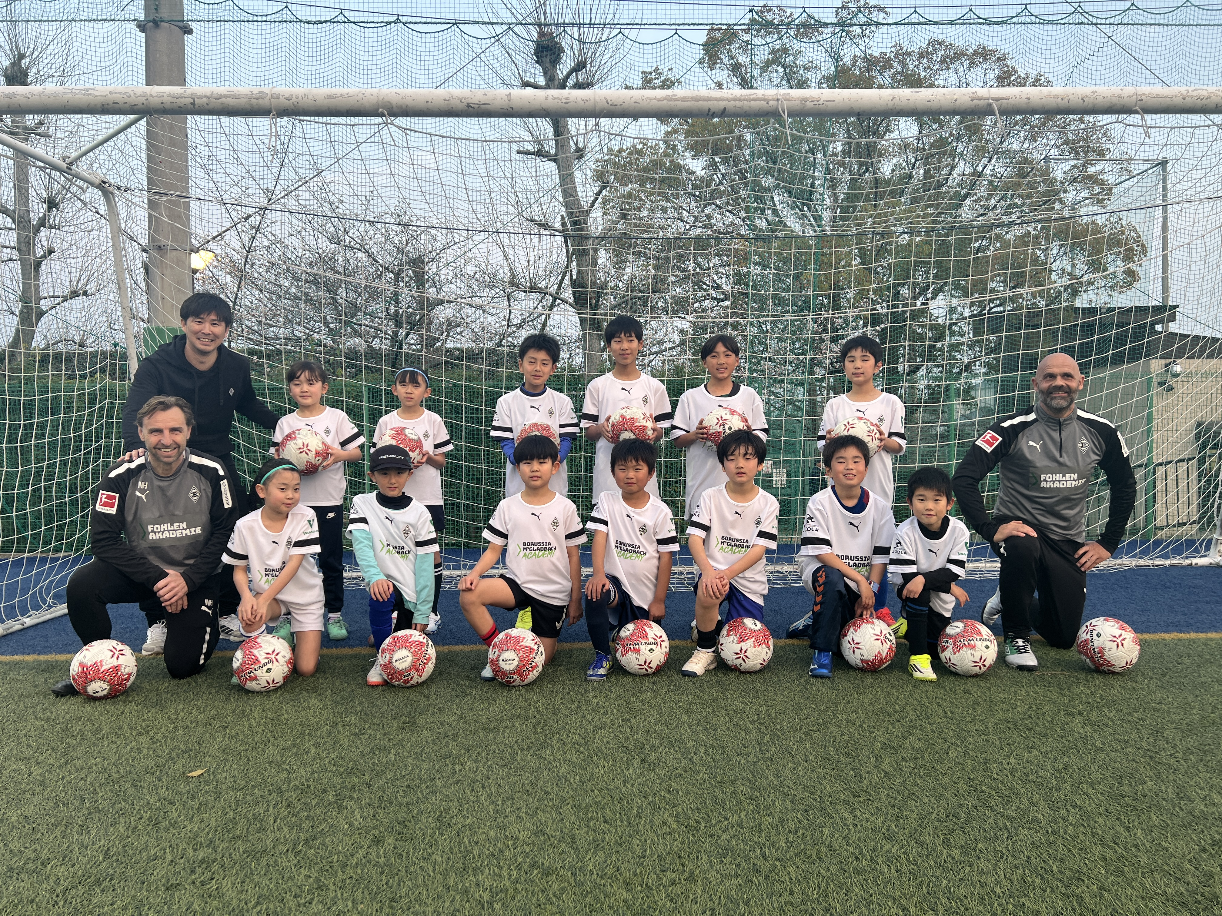 ボルシアMGは5度のリーグ優勝を誇るドイツの古豪。ジュニア、ジュニアユースの育成を担当するWolfgang Heilmann氏とSascha Bauer氏が来日し、ボルシアMGの哲学も交えた技術指導を行いました。当日は小学生・中学生13名が参加し、サッカーを目いっぱい楽しみました。