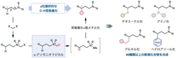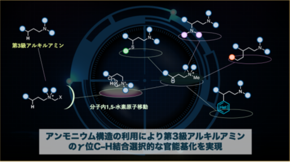- 第3級アルキルアミンのγ位に存在するC–H結合のみを選択的に変換することに成功しました。