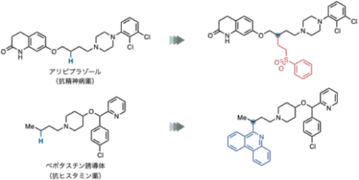 - 複雑な構造をもつ医薬品分子の後期段階修飾を達成しました。
