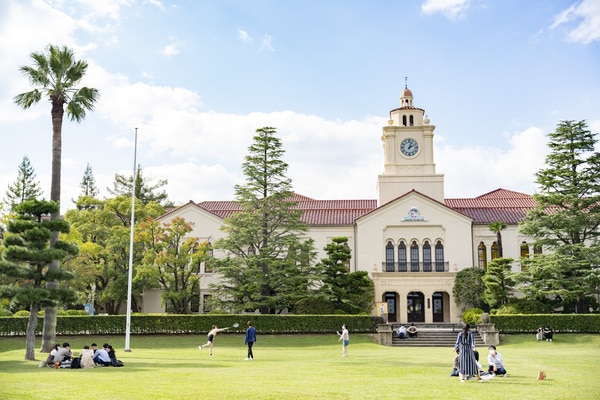 本来はアメリカ・カリフォルニア州の太平洋沿岸のEl Camino(王の道)と呼ばれる要路にそって点在する、18世紀から行われたカトリック伝道の拠点となったミッション(修道院)の建築様式にちなむもので、クリーム色外壁とスペイン風赤瓦を特色としています。 1929年、上ケ原にキャンパスを移転する際、設計者のW.M.ヴォーリズにより校舎の統一基本デザインとして採用されました。 以後、西宮上ケ原さらに神戸三田キャンパスの各校舎のデザインもほぼこれによってなされ、関西学院両キャンパスの一体感を生み出すものとなっています。