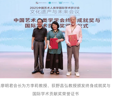 「中国芸術人類学国際学術成就賞」は、中国芸術人類学会が国際的に顕著な研究成果を挙げた研究者に授与するもので、芸術人類学の理論的発展や実践的貢献に対して高く評価されるものです。荻野名誉教授は長年にわたり、芸術人類学の分野で国際的な研究交流を推進し、特に中国における芸術文化のフィールドワークと理論構築において多大な功績を挙げたことが評価され今回の受賞に至りました。
