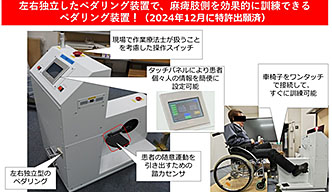 中後大輔・工学部教授(サービスロボティクス研究室)が、2025年10月23日と24日にパシフィコ横浜で開催される横浜ロボットワールド2025に、“動かない足から動ける足へ 「GO!ペダル」”を出展します。「GO!ペダル」は筋シナジー(筋肉の協同発揮現象)を利用して、安全な座位で効率的な歩行訓練を脳卒中後片麻痺患者に提供するペダル型リハビリ支援装置です。