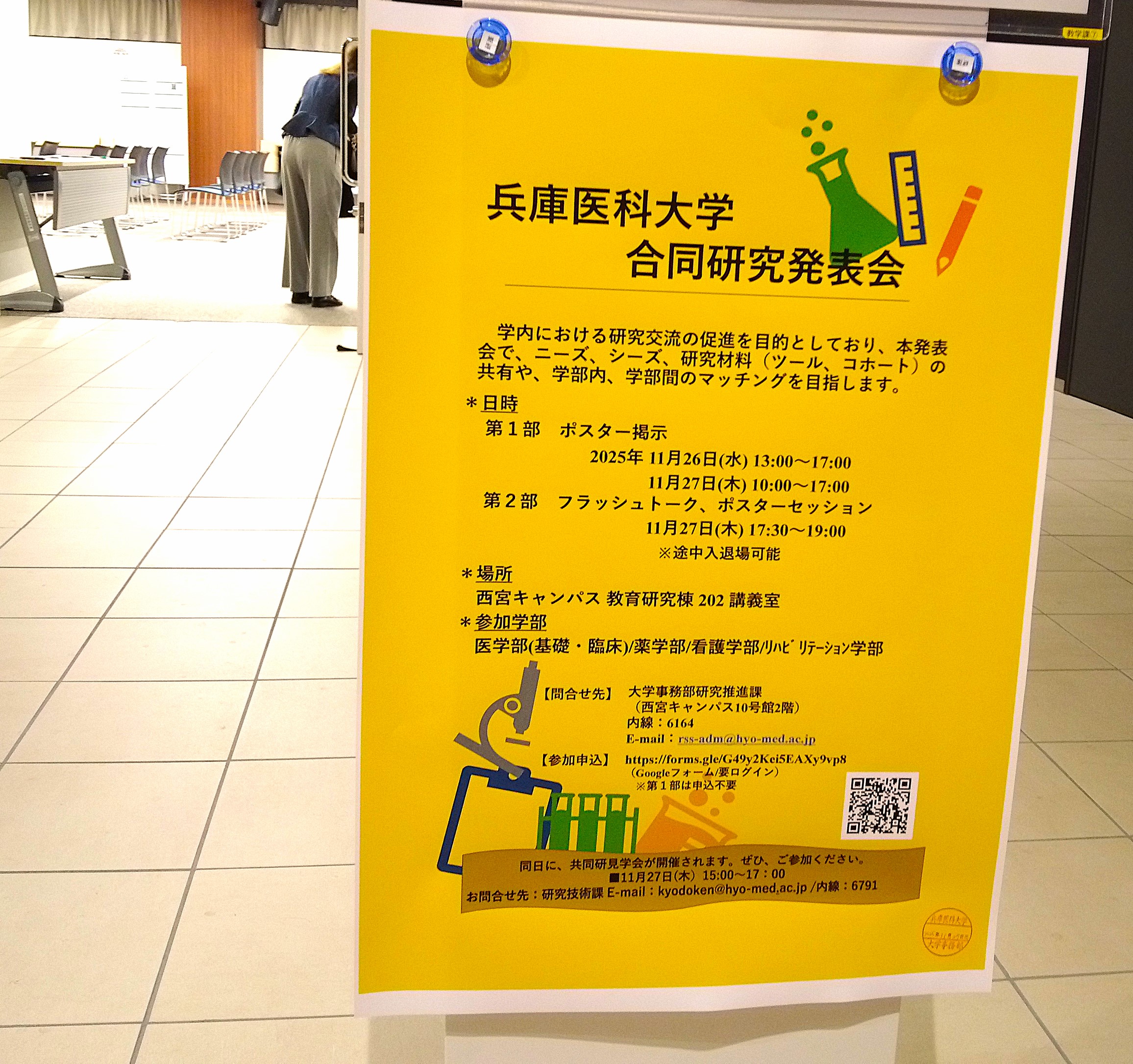 2025年11月26日から27日にかけ開催された第3回 兵庫医科大学 合同研究発表会に、関西学院大学から工学部の井村誠孝教授、中後大輔教授、生命環境学部の関由行教授が参加しました。