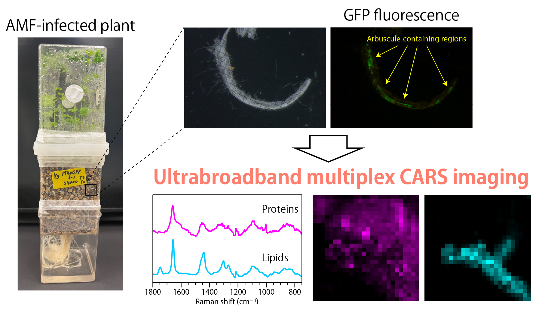 論文タイトル:Ultrabroadband Multiplex CARS Imaging Reveals Distinct Protein- and Lipid-Rich Domains in Arbuscules