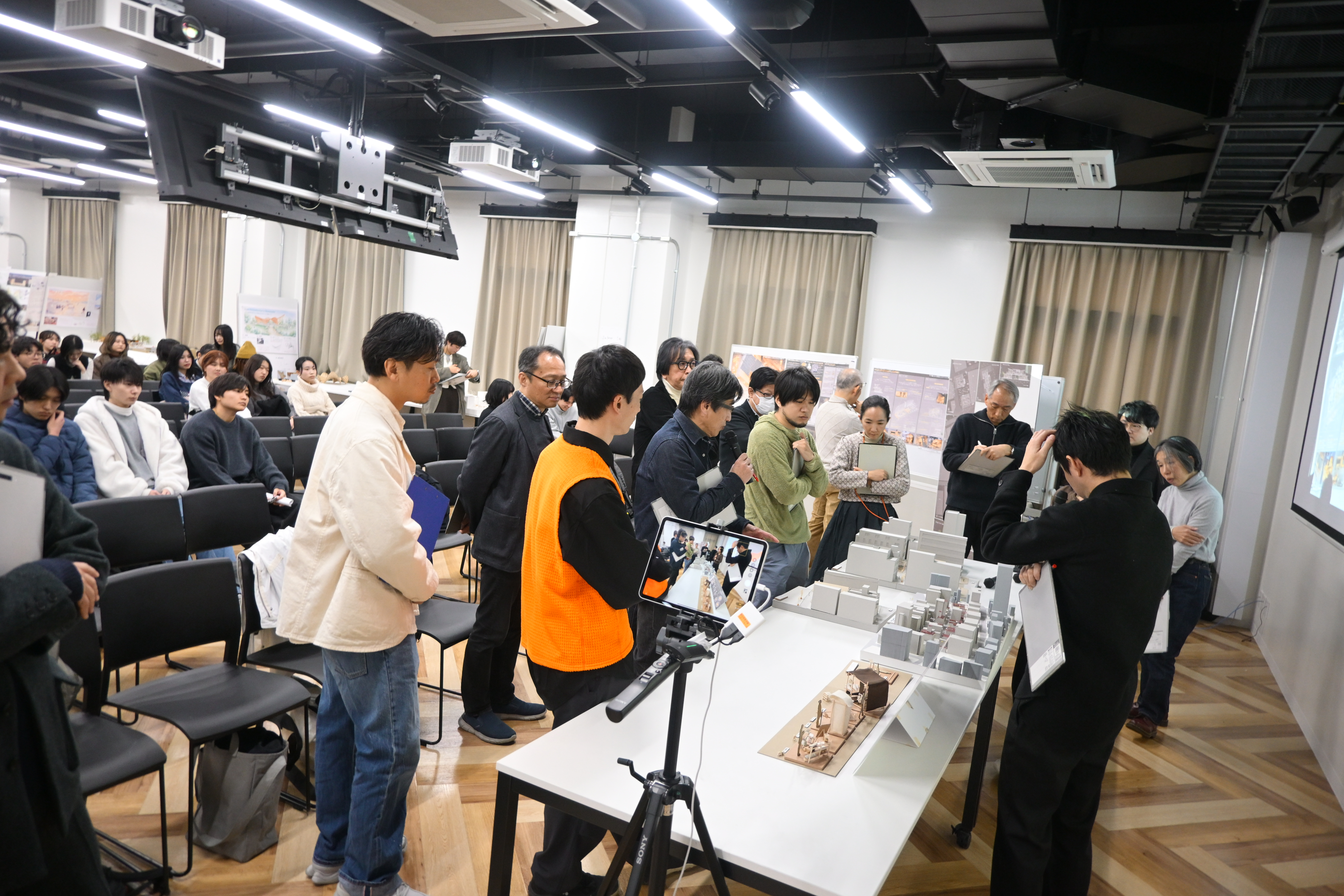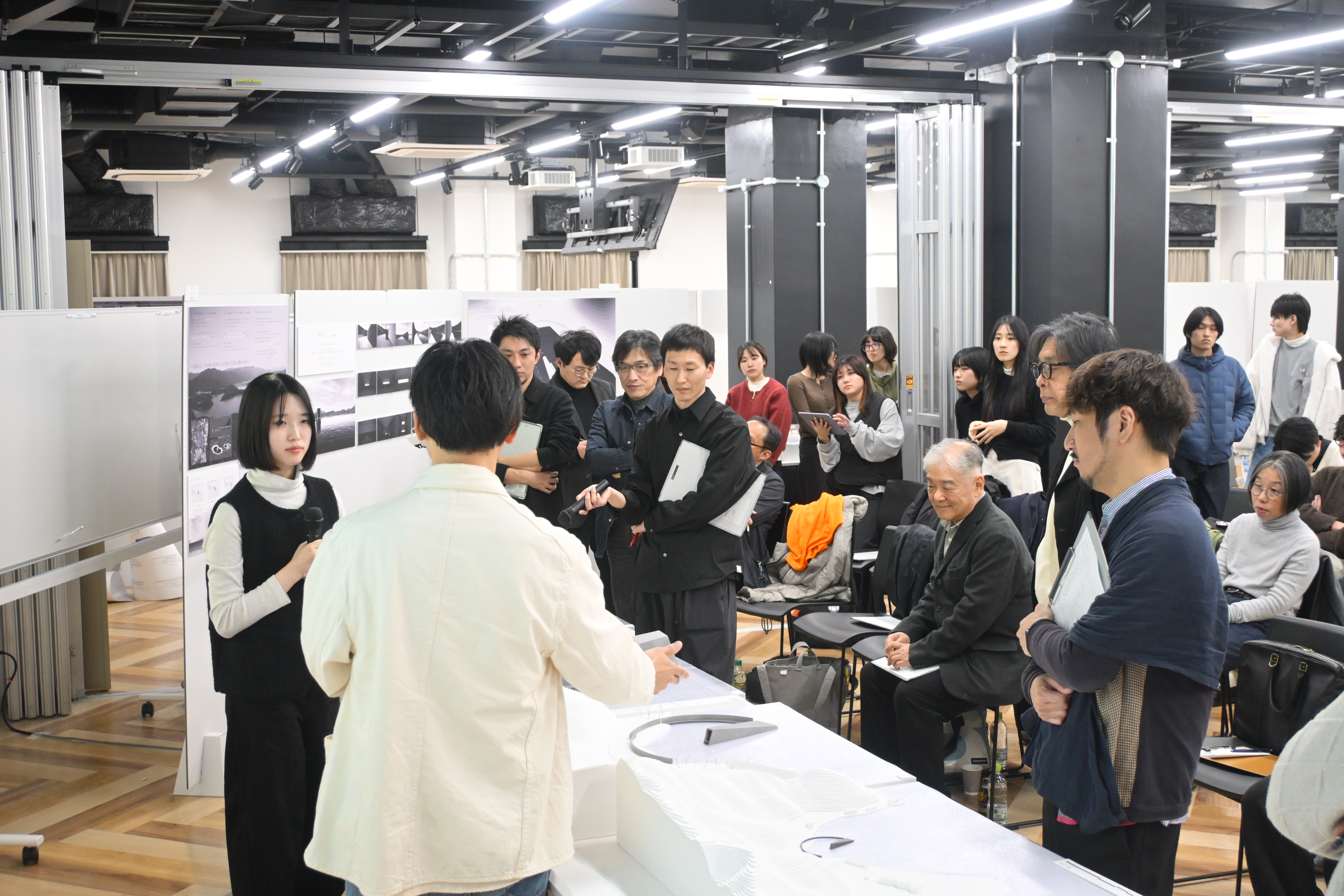 30日には本学客員教授の岸和郎先生にご来学、ご講評をいただき、多くのオーディエンスに囲まれ緊張感漂う刺激的な時間となりました。