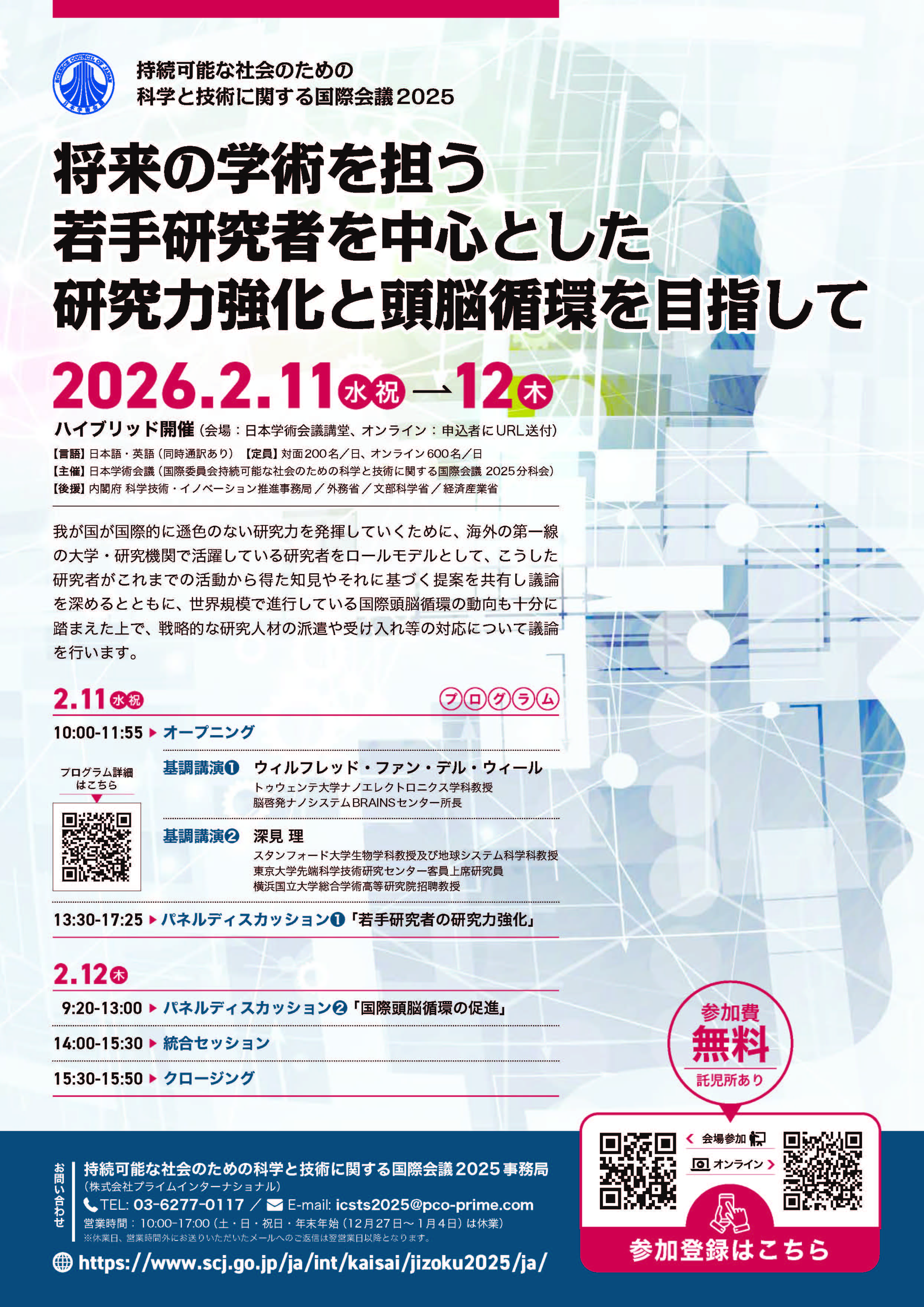 阪智香教授(日本学術会議連携会員)が、2026年2月11日(水)-12日(木)に開催された、日本学術会議の国際会議「持続可能な社会のための科学と技術に関する国際会議2025『将来の学術を担う若手研究者を中心とした研究力強化と頭脳循環を目指して』」(於:日本学術会議講堂)において、『国際頭脳循環の促進』に関するパネル討論に登壇しました。
