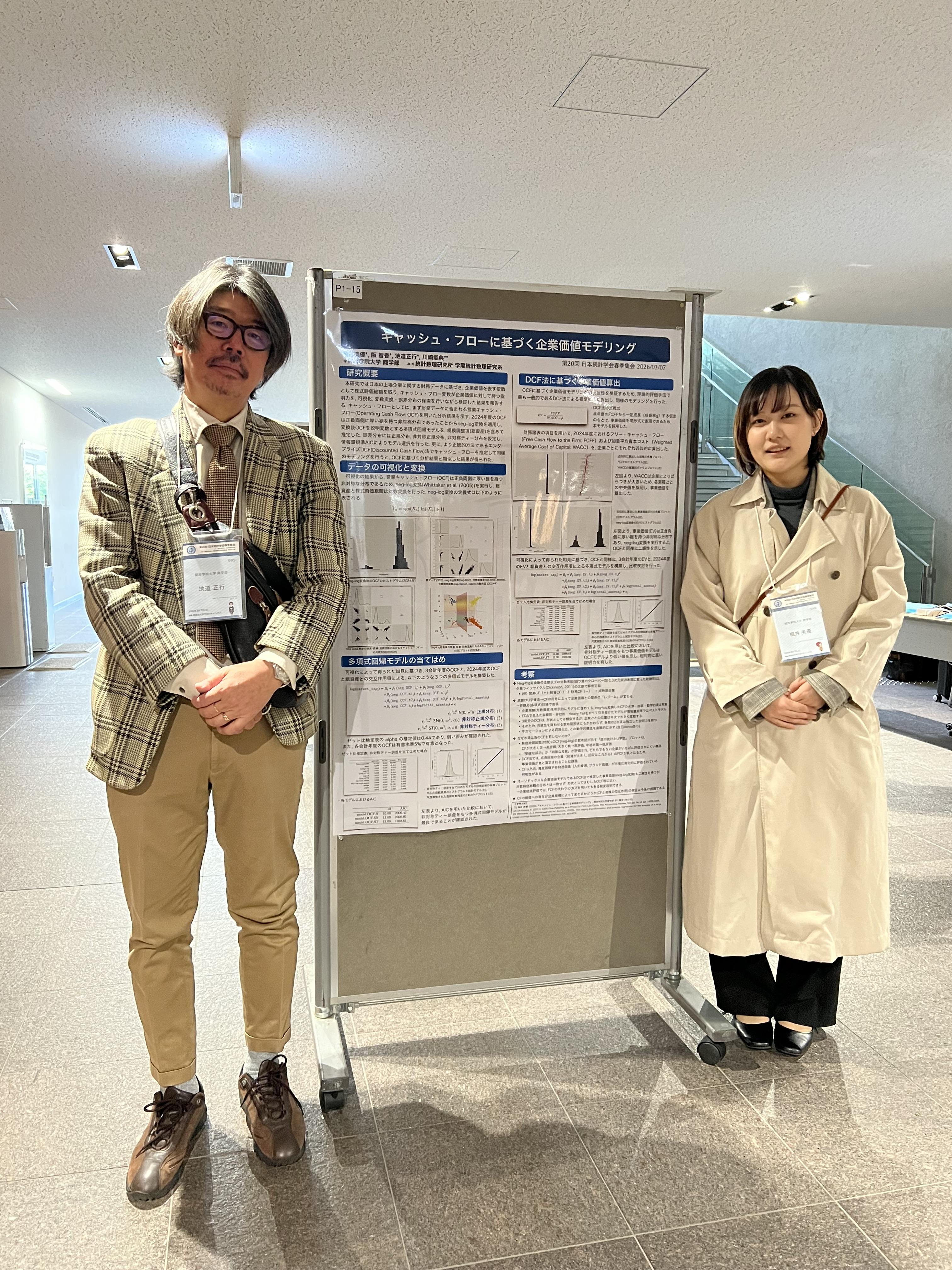商学部4年生の福井美優さんが、2026年3月7日(土)に同志社大学今出川キャンパスにおいて開催された日本統計学会春季集会において商学部の阪 智香教授、地道正行教授、統計数理研究所の川崎能典教授との共同研究についてのポスター発表を行いました。