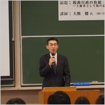 2024.12.23 [ニュース]学術講演会が開かれました(神戸税務署長 大熊健氏「税務行政の取組―主権者として税の意義と社会の在り方を考えよう―」) -