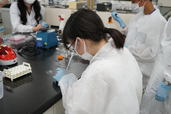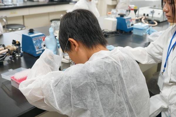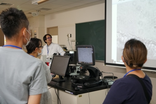 中学生・高校生向けのこの体験型プログラムは生命環境学部 生命医科学科 鳥山 道則 講師のもとで行われ、参加者は繊毛についての講義を受けた後、マウス気管の繊毛の染色と蛍光顕微鏡での観察、さらに生きた気管の組織片を用いて繊毛の動きと流れの発生を観察しました。