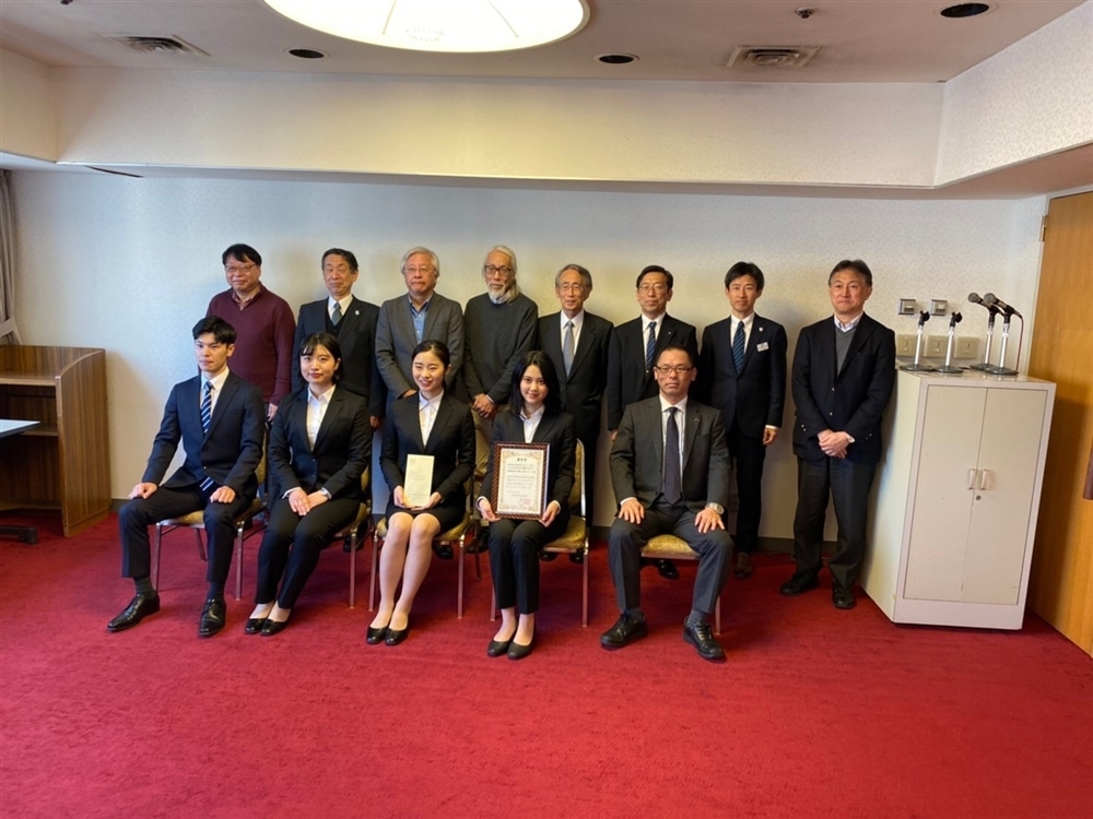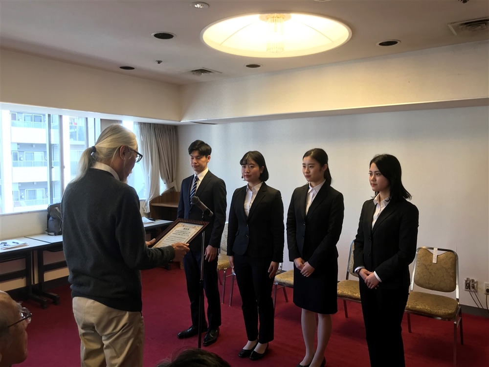 表彰式では、上村ゼミ11期生を代表して、4名のゼミ生が参加し、研究内容の概要を報告しました。表彰状と研究奨励金を受け取りました。今後、学会の研究誌に、上村ゼミ11期生の論文が掲載される予定です。