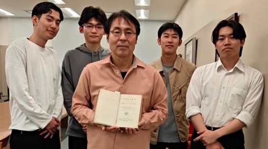 写真1:スミス『道徳感情論』(初版、1759年)と原田ゼミ3回生一同