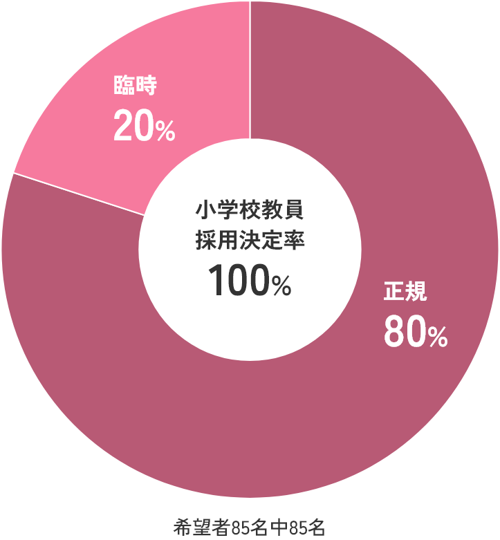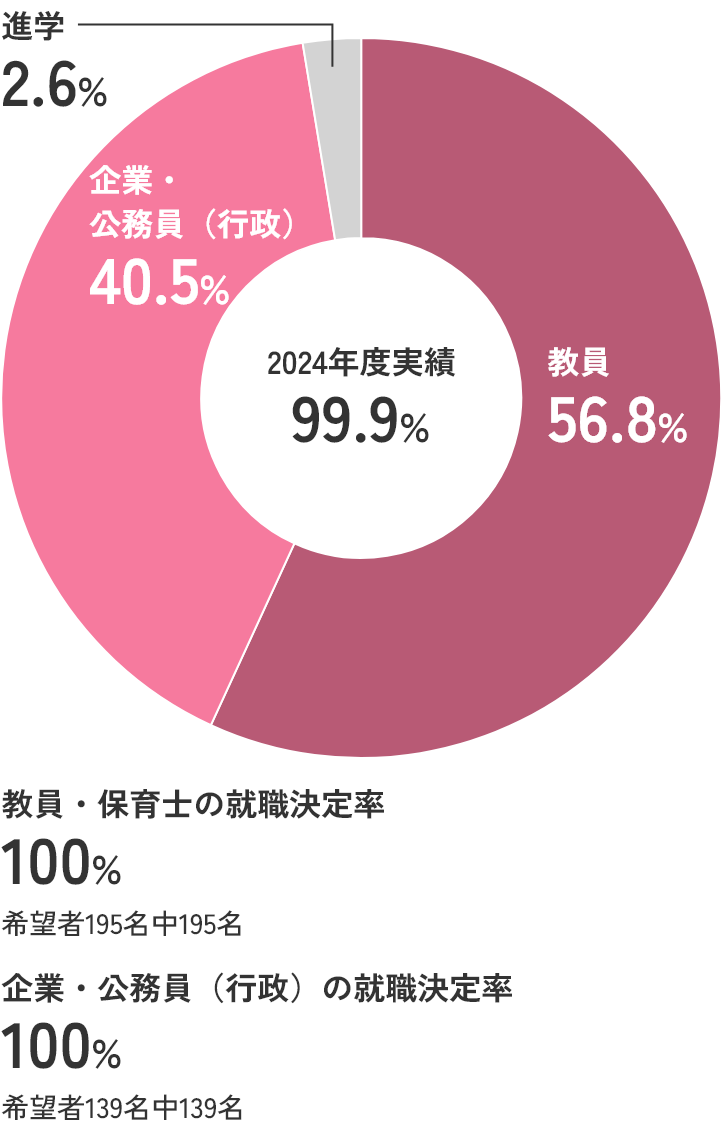 教員希望者195名中195名が教員・保育士への就職が決定し、就職決定率が100%となりました。