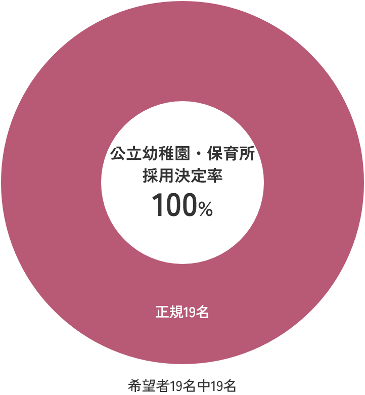 公立幼稚園・保育所への希望者は19名全員が正規で採用され、私立幼稚園・保育所への希望者は62名全員が正規で採用されました。