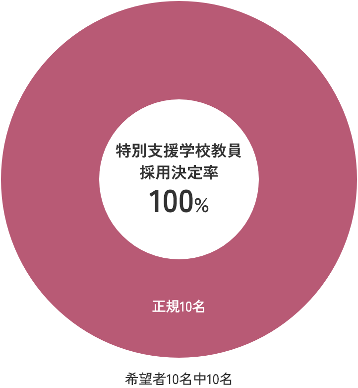 特別支援学校教員の希望者は10名全員が正規採用となり、こちらも採用決定率は100%となっています。