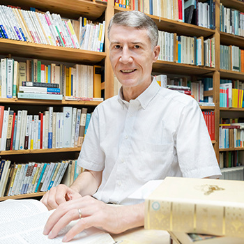 学問とは文字どおり“問い学ぶ”ことです。これらの問題を聖書を通して考察し、研究するのが私の仕事です。これは文学にも当てはまります。スイスのドイツ語圏から来た者として、特にドイツ語の文学は興味深い研究対象です。また、ドイツ語から日本語へ、日本語からドイツ語への翻訳や翻訳論などにも興味があります。