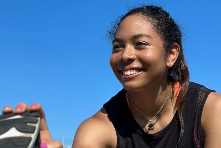 走り幅跳びの選手としては、大学1年生の時に一からフォームを見直したことで面白いくらい記録が伸び、何度も自己ベストを更新し、関西インカレでも優勝できました。記録が出た瞬間というのは、言葉には表せない達成感があります。2年生の時は故障でいい結果は出せなかったものの、前年の成績で日本選手権など大きな試合を経験できました。3年生になる春休みには単身陸上留学したシドニーで右すね脛骨の疲労骨折が発覚、他のメンバーと同じ練習はできなくても最後まで学びたいと訴えて何とか受け入れられたものの、一生忘れられない経験になりました。帰国後に手術をして今もリハビリ中です。この1年間は来年に向けての準備期間とシフトチェンジして、リハビリとそれに合わせたトレーニングをひたすらしています。3年生こそと思っていたのですごくつらかったですが、逆にリハビリの計画やリハビリ中のトレーニング方法を学ぶ機会になりましたし、体のバランスが悪かったことにも気付けました。卒業後も陸上を続けると決めているので、学生のうちに経験してよかったと何とか切り替えられた感じです。2028年のロサンゼルス五輪と2025年の東京の世界陸上選手権大会に照準を当て、来年全日本インカレで学生日本一を取ることが目標です。グランプリシリーズの一つが北海道で開催されているので、来夏は参加し、実習を通して関わらせていただいた方たちの前で跳びたいですね。