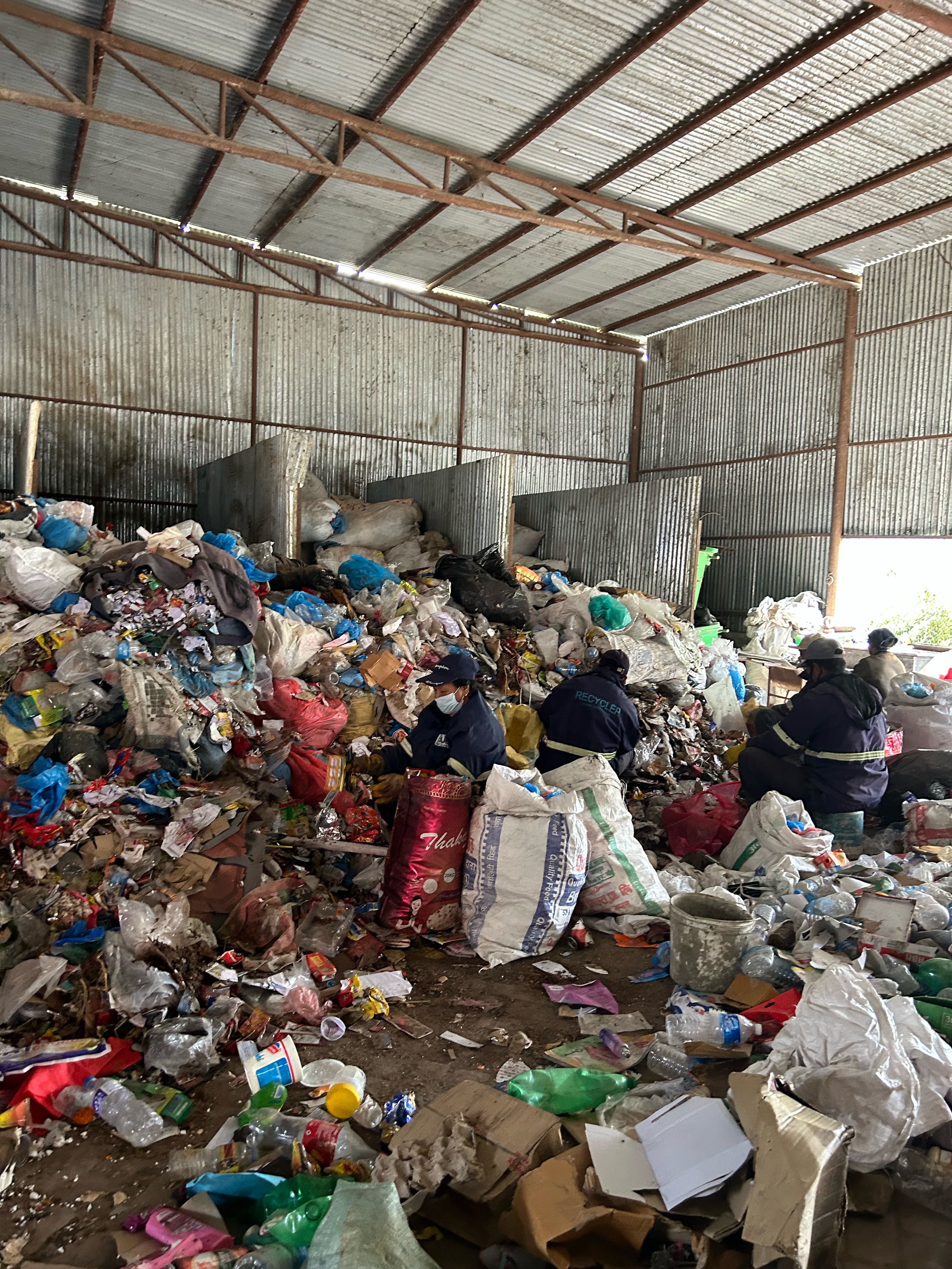 私がルワンダで何よりもショックを受けたのは、道に放置されたプラスチックごみや生ごみの多さでした。それが2年生の春学期からの「人間福祉海外フィールドスタディ」の授業につながりました。1年間受講後に実習先として選んだのが、ネパールの首都カトマンズを中心に、ホテルの事業ごみをはじめポイ捨て・放置ごみを回収・分別し、プラスチックごみのアップサイクル等に取り組む社会企業です。「政府により仕組みがつくられている日本と違い、限られたリソースでどのように問題を解決するかを学べるのでは」と担当の先生にアドバイスを頂き、2年生の春休みに7週間、現地でごみ問題とじっくり向き合いました。トラックでのごみ回収や、手作業での分別を体験し、また、プラスチック製のお菓子袋をひも状にしたものでバッグを編む女性たちに話を聞いたり、観光客らがヒマラヤ山脈にポイ捨てしたプラスチックごみから登山記念品やアクセサリー、キャンドルホルダーなどを作って販売する工房で店頭に立ったりしました。
