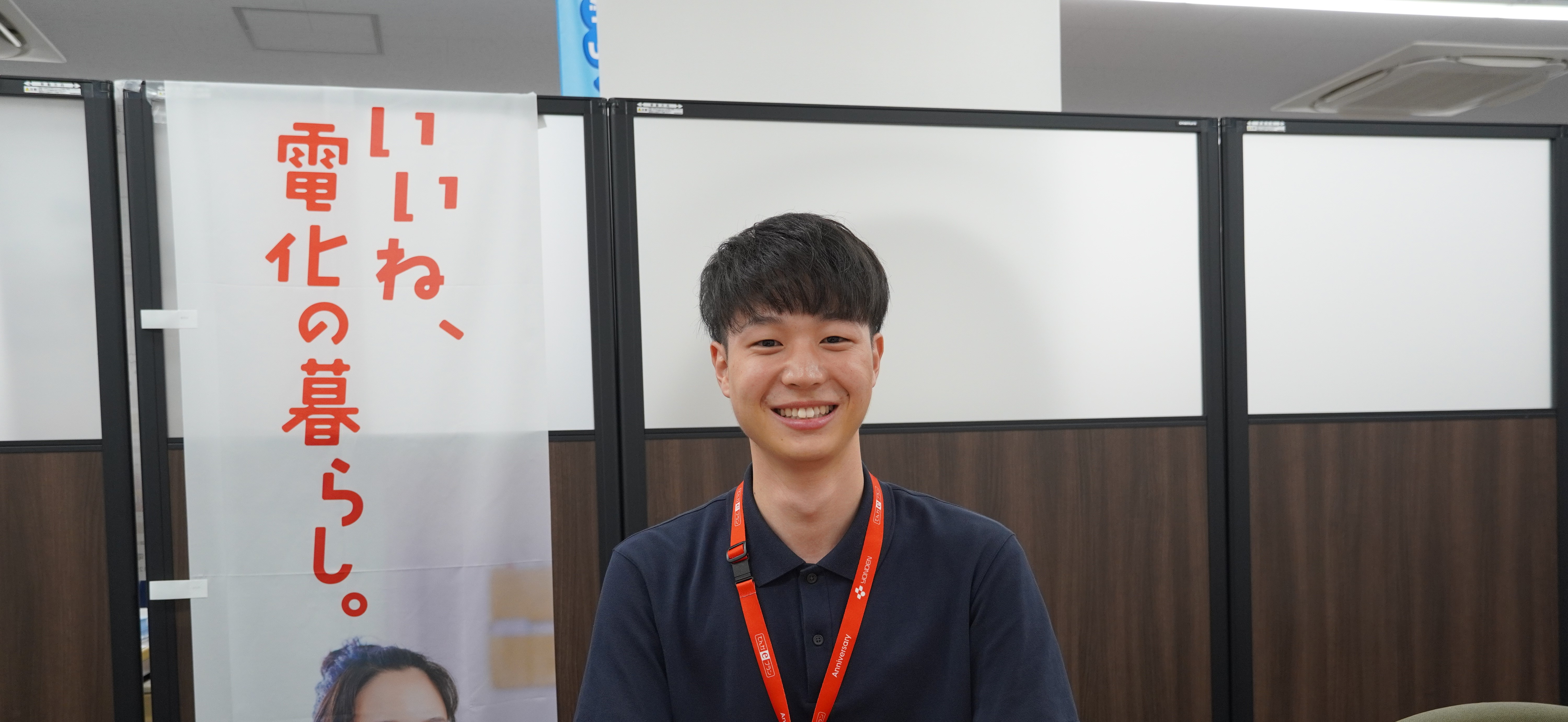 就職活動は地元のために働きたいという思いで取り組み、暮らしに欠かせない電気で地域を支える四国電力株式会社に入社しました。現在は徳島支店営業部に所属し、電話や窓口での個人のお客さまの対応や、電化住宅イベントの企画・運営などに携わっています。給湯器の相談に来られたお客さまから後日「丁寧な説明のおかげで買い替える決心がついたよ、ありがとう」と電話を頂いた時には、地域の方のお役に立てていることに喜びを感じました。また、地元の放送局のテレビ番組に出演して電化キャンペーンの告知を行ったり、阿波踊りで自社の連に入ったりと、地域と関われる場には積極的に参加しています。今後も地域の皆さんとのつながりを大切に、信頼される電力のプロフェッショナルを目指していきたいです。
