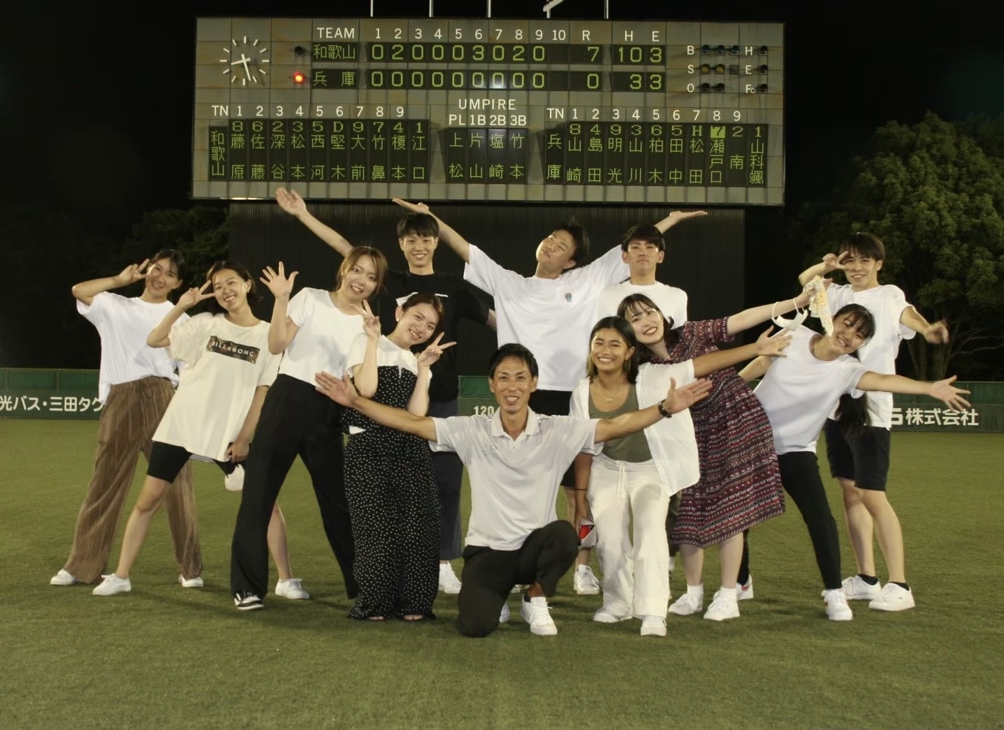 大学3年生では、もっと多くの大学が参加する大会を開こうと仲間と企画を立て、西日本の30近くの大学を回って勧誘。遠征費がかさむので簡単には承諾してもらえませんでしたが、熱意を持って根気強く思いを伝え、結果、3年生の春休みに神戸で14大学が参加する大会を開催することができました。学生だけの運営は、対外的な交渉をはじめ慣れないことが多くて大変でしたが、大会のパンフレットを作成して思いをしっかり伝えることで信頼を得るとともに、兵庫ブレイバーズのイベントで球団や農家の方など学外の人たちとコミュニケーションを取ったゼミでの経験を生かして乗り越えることができ、自身の成長にもつながりました。徳島大学のメンバーからも「初めて全国のレベルを体感でき、チームの課題が明確になった」と言われ、部の強化に貢献できたことに達成感を感じました。大学時代のいい思い出です。