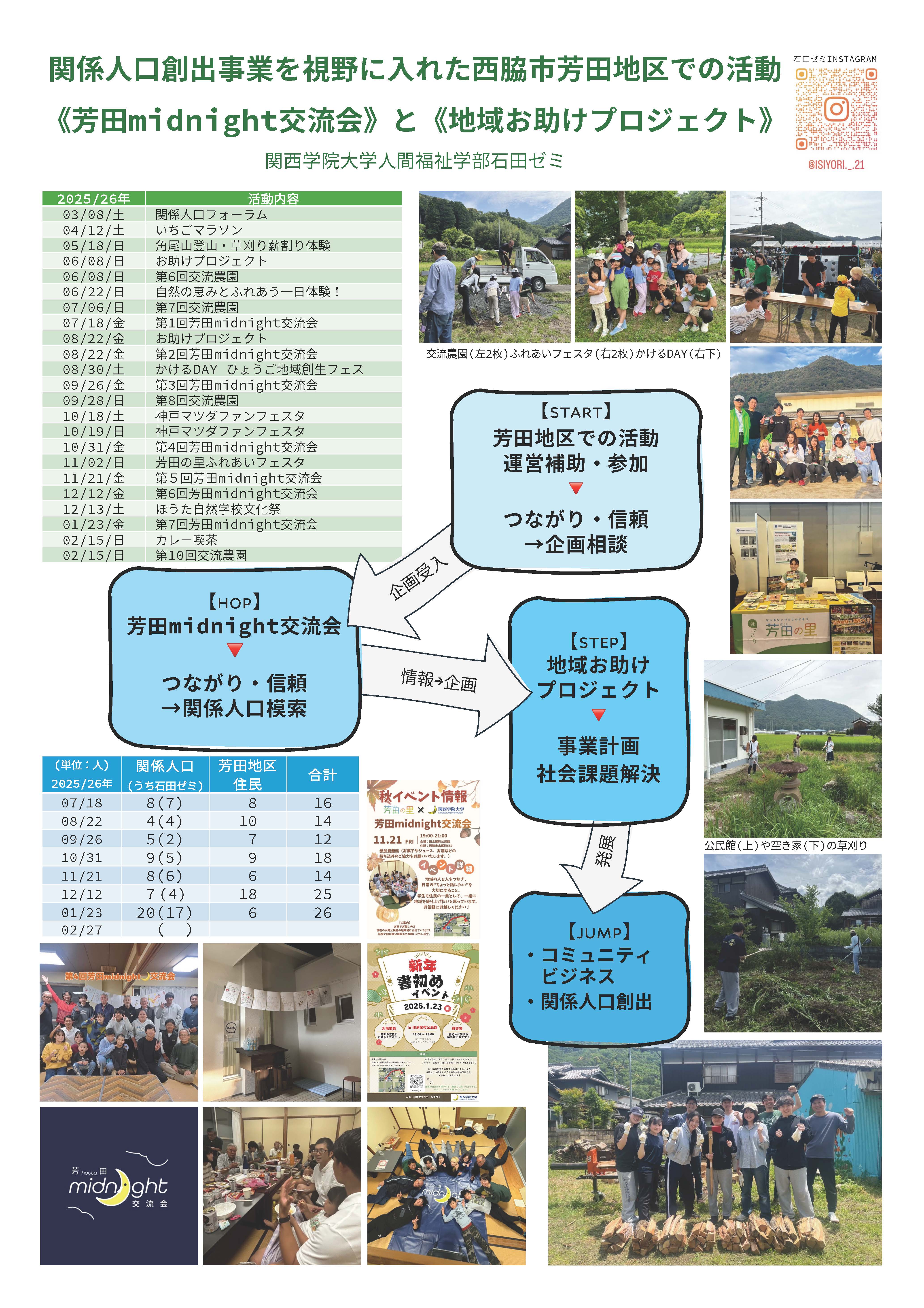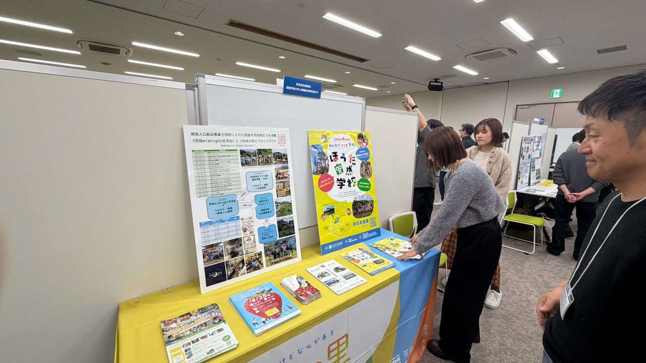 人間福祉学部社会起業学科石田ゼミの3名(尾崎琴菜さん、福島寿々莉さん、牧野夏実さん。50音順)が、2026年3月15日に、兵庫県立兵庫津ミュージアムで開催された、「ひょうご関係人口フォーラム・交流会――共感から共創へ、地域と共に未来をつくる」において、芳田自治協議会とともにポスター発表を行いました。