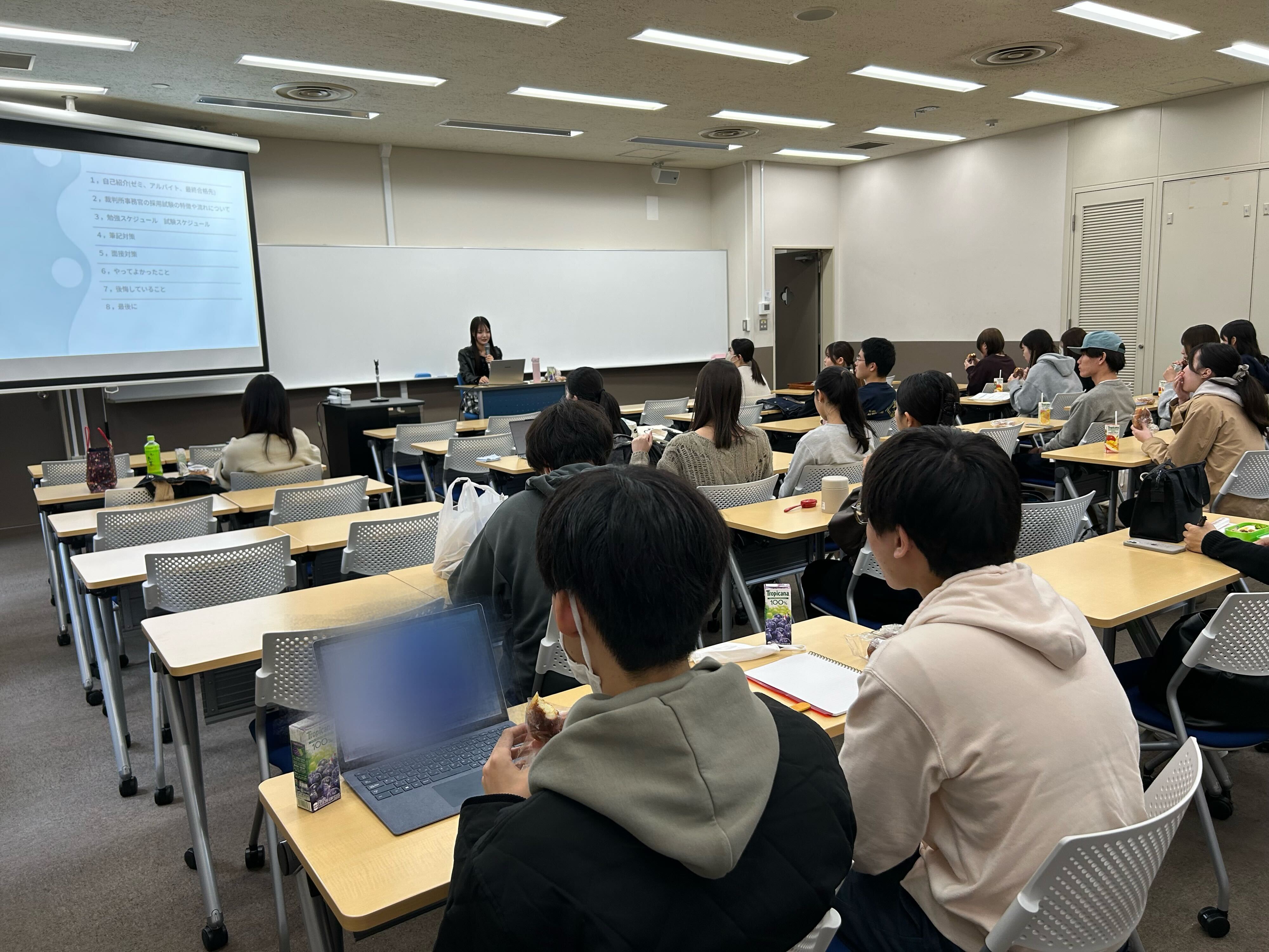 多い日では約30名の学生が参加し、実際に公務員試験を受験した先輩方のスケジュールや勉強方法などについて、理解を深めました。