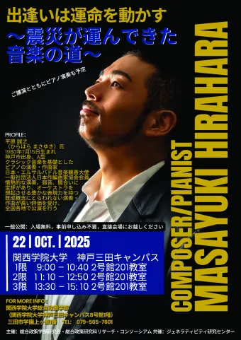 2025.10.06 [ニュース]【10/22開催】学部講演会 出逢いは運命を動かす〜作曲家/ピアニスト 平原誠之 震災が運んできた音楽の道〜