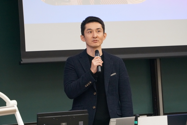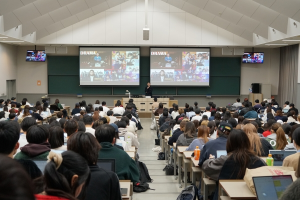 総合政策学部は、11月13日(木)に「放送メディア論(担当:小西美穂特別客員教授)」に総合政策学部OBで現在毎日放送コンテンツ戦略局 東京コンテンツ戦略部で活躍される岩波輝氏(※)に登壇いただき、「アニメ『ダンダダン』の海外展開~世界を駆けめぐるコンテンツ戦略の舞台裏~」をテーマに講演を開催しました。