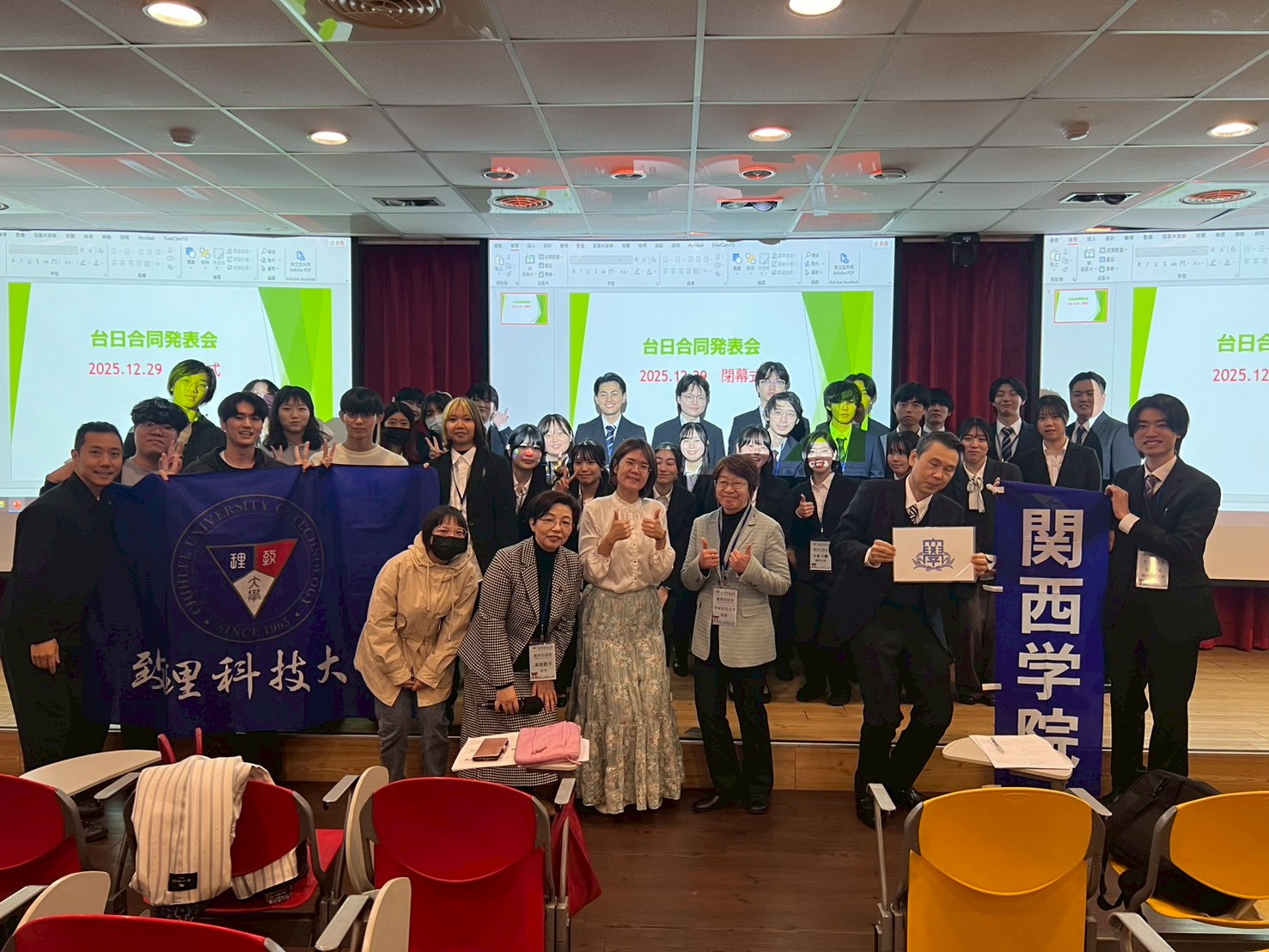 総合政策学部伊佐田百合子教授(メディア情報学科)のゼミは、2025年12月27日から30日にかけて台湾を訪問し、致理科技大学、関西大学と共に国際共同研究発表会を実施しました。この研究発表会は毎年年末に開催しており、今年度で13回目の開催となりました。2023年度からは、致理科技大学が地方創生に取り組んでいるプロジェクト地域の視察も併せて実施しています。