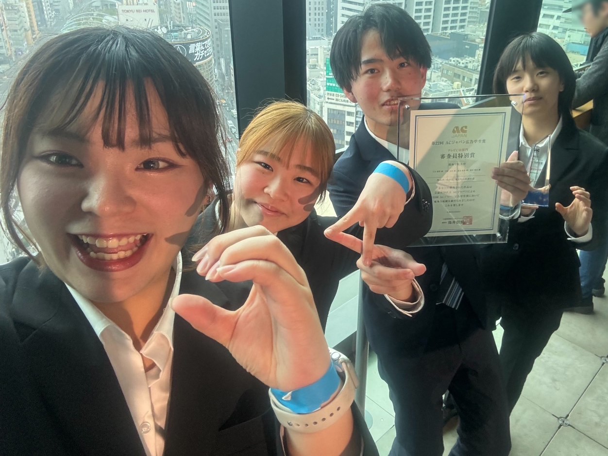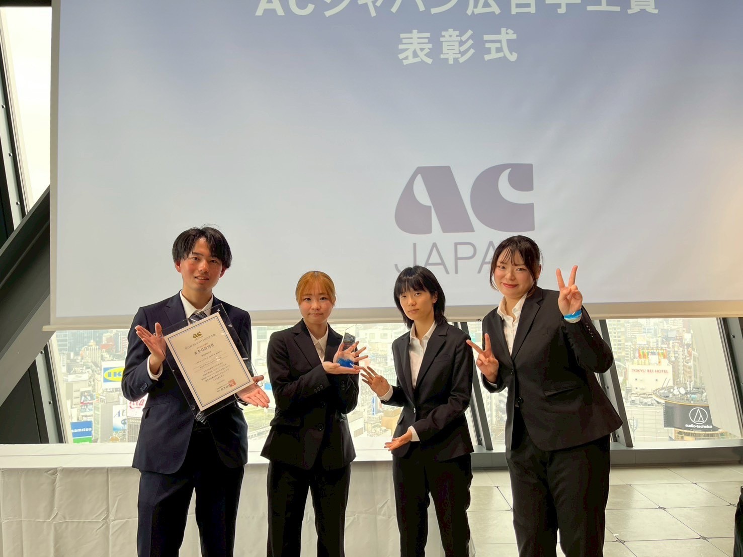 2025年度の授業で公共マナー問題に着目し制作されたテレビCM作品「それは、見えない誰かの道」がこの度、第22回ACジャパン広告学生賞において、参加校45校302作品の中から見事「審査員特別賞」に選出されました。同賞はグランプリ、準グランプリに次ぐものです。3月25日(水)には東京・渋谷のスクランブルホールで開催された表彰式にチームメンバーが出席し壇上にて表彰状とトロフィーを受けとりました。
