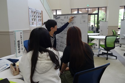 神戸三田キャンパス の アカデミックコモンズ には、大学院生の先輩が学習相談にのってくれる「 クレセントチューター 」という制度があります。「この授業のこの部分がわからない」「レポートってどうやって書くの」といった勉強の悩みを何でも気軽に相談できます。
