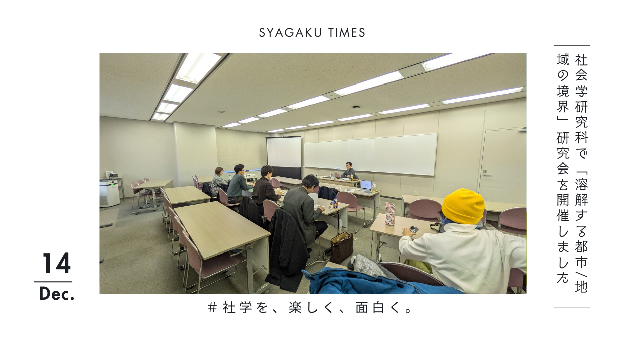 社会学研究科の取り組み「共同研究会」の一環として、12月14日(日)に近森高明教授(慶應義塾大学)を招き、「溶解する都市/地域の境界研究会」を開催しました。