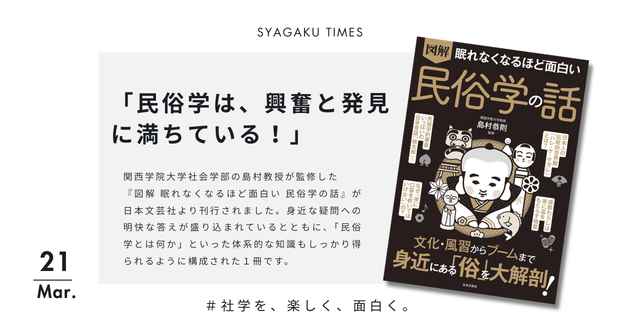 関学社会学部の島村恭則教授監修の新刊ご紹介!『図解 眠れなくなるほど面白い 民俗学の話』発売