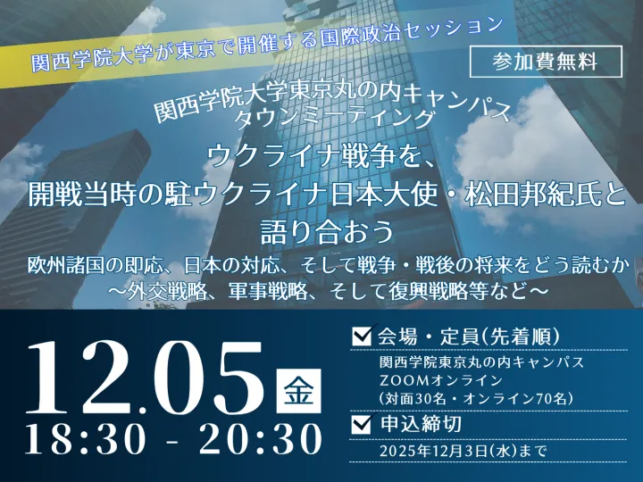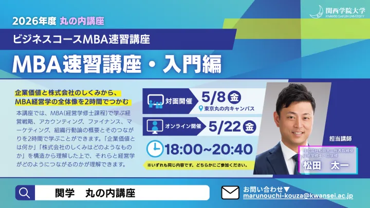 東京での「丸の内講座」の講師・監修に携わるなど、東京丸の内キャンパスの中心として関西学院大学の教育活動に幅広く貢献しています。