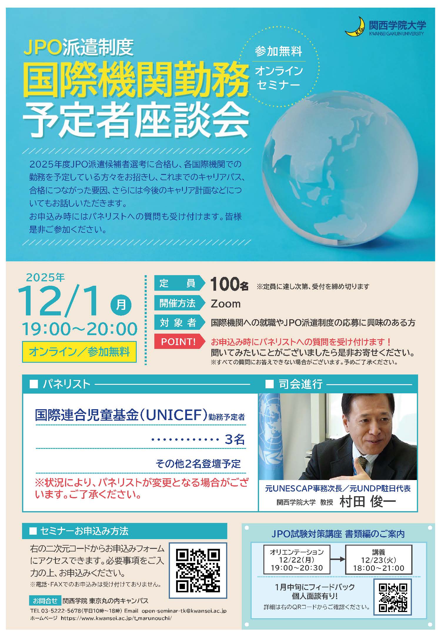・講座名:JPO派遣制度 国際機関勤務予定者座談会