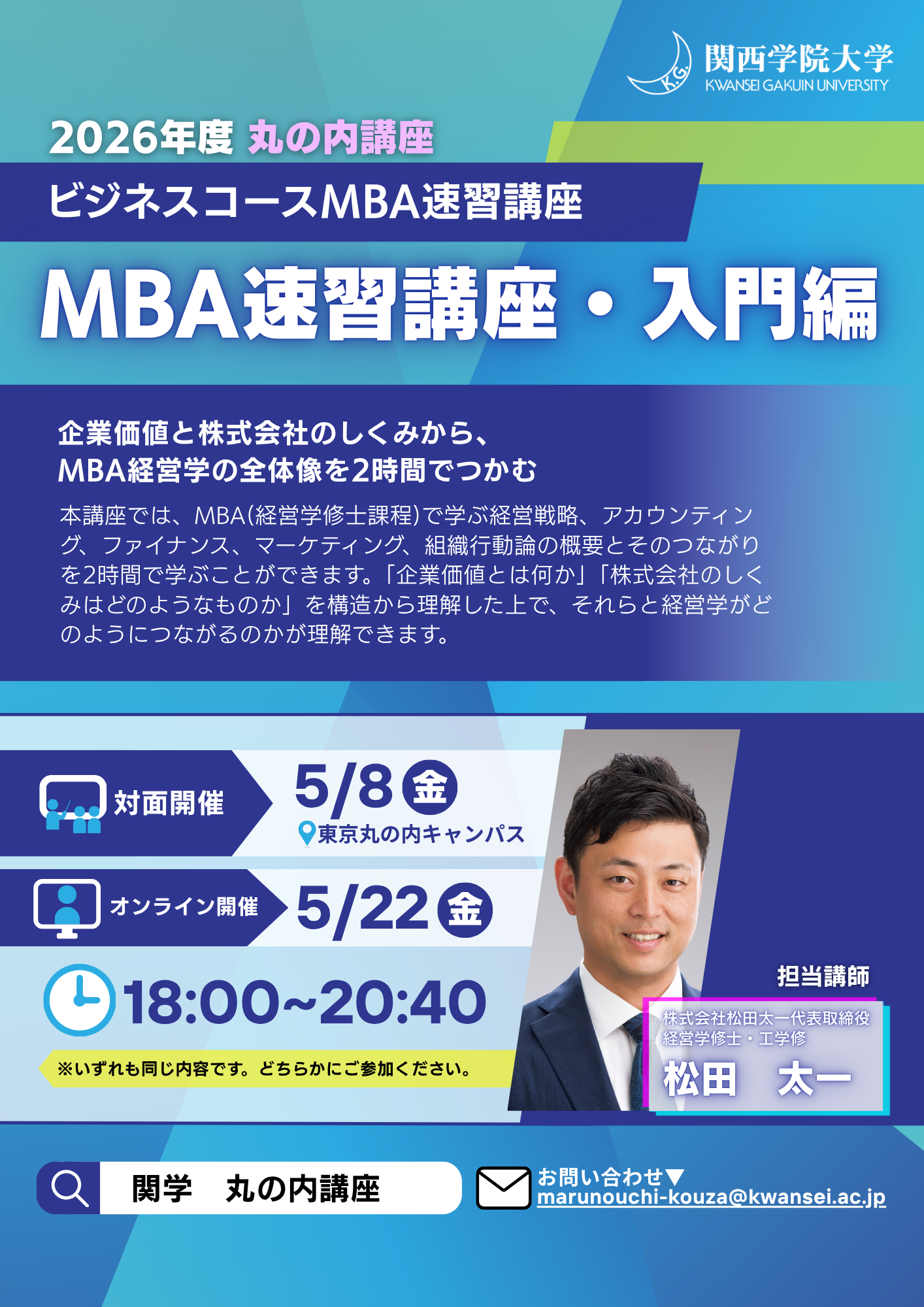 丸の内講座 ビジネスコース MBA速習講座・入門編 近日開講!
