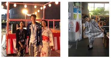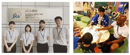 写真左:右端が西川さん 写真右:JICA関西の国際交流イベントにて
